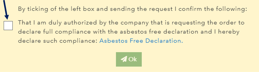 Finally you need to click again “send request” always in right side of the page and confirmation message that your product(s) is/are asbestos free shall be selected
