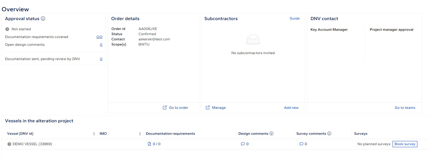 - 'In progress': documents sent to DNV