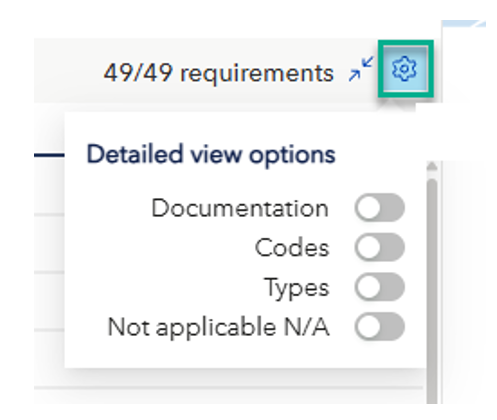 You can show or hide the mapped documents in the requirement list by using the available “Show/hide documentation” function.