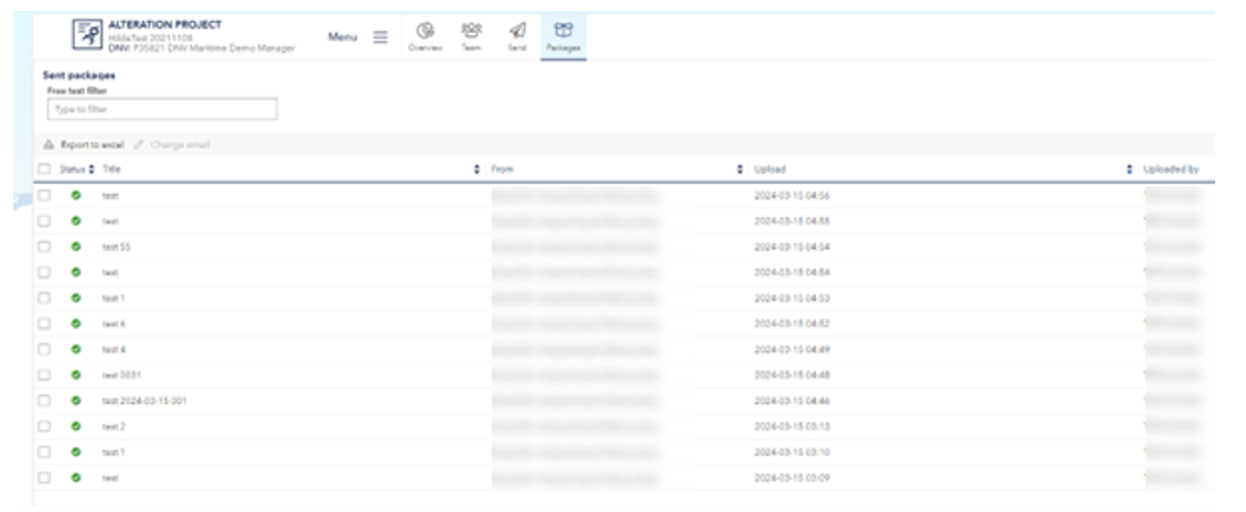 All packages that have been successfully uploaded will be marked with a small green circle ( )