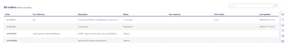 Link to a list of all DNV orders of your company since 2014. Here you may search for orders and open them to see more details.
